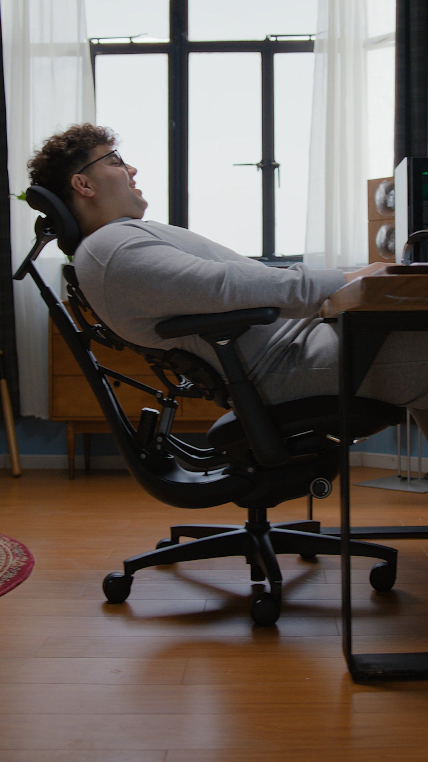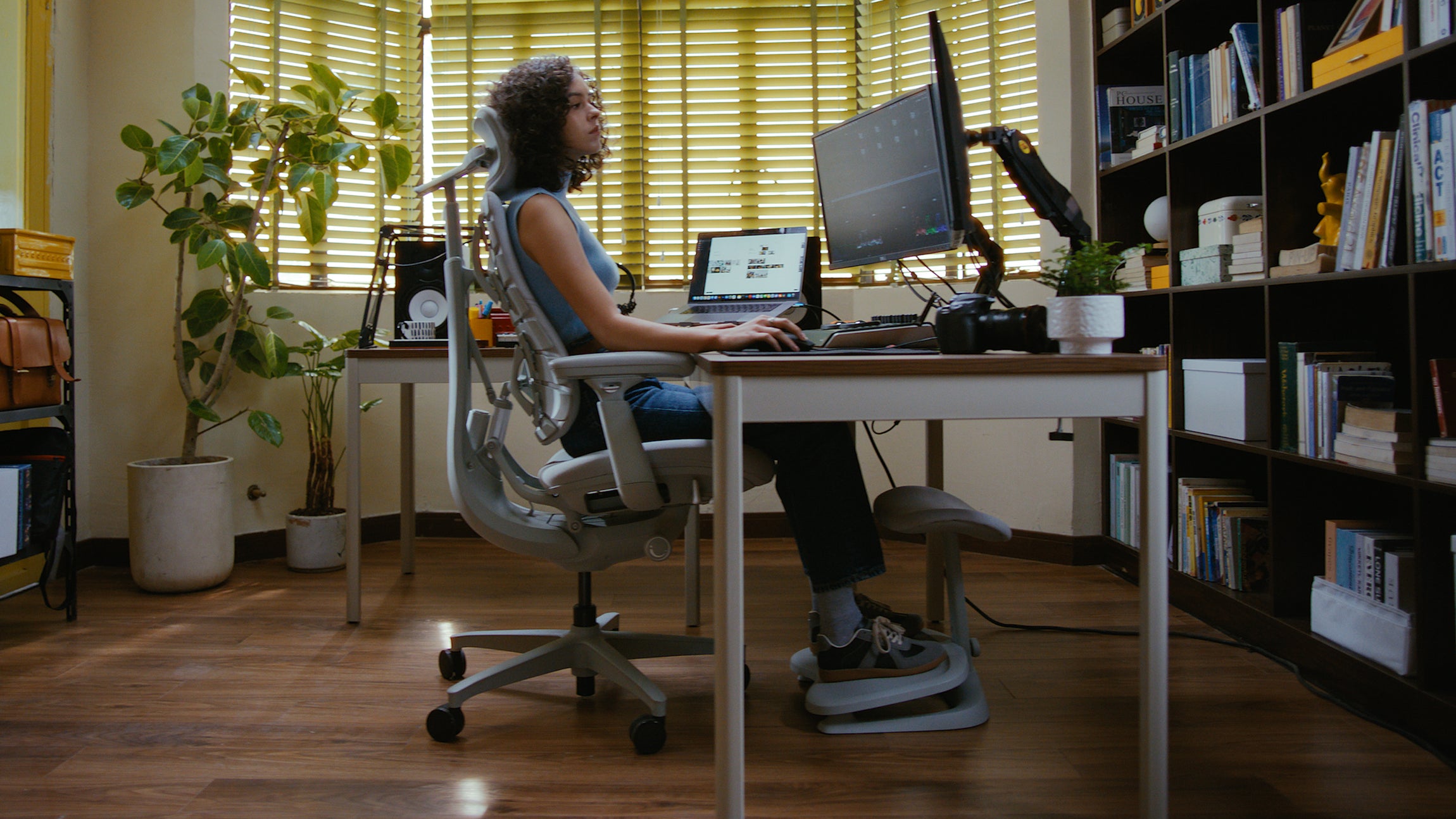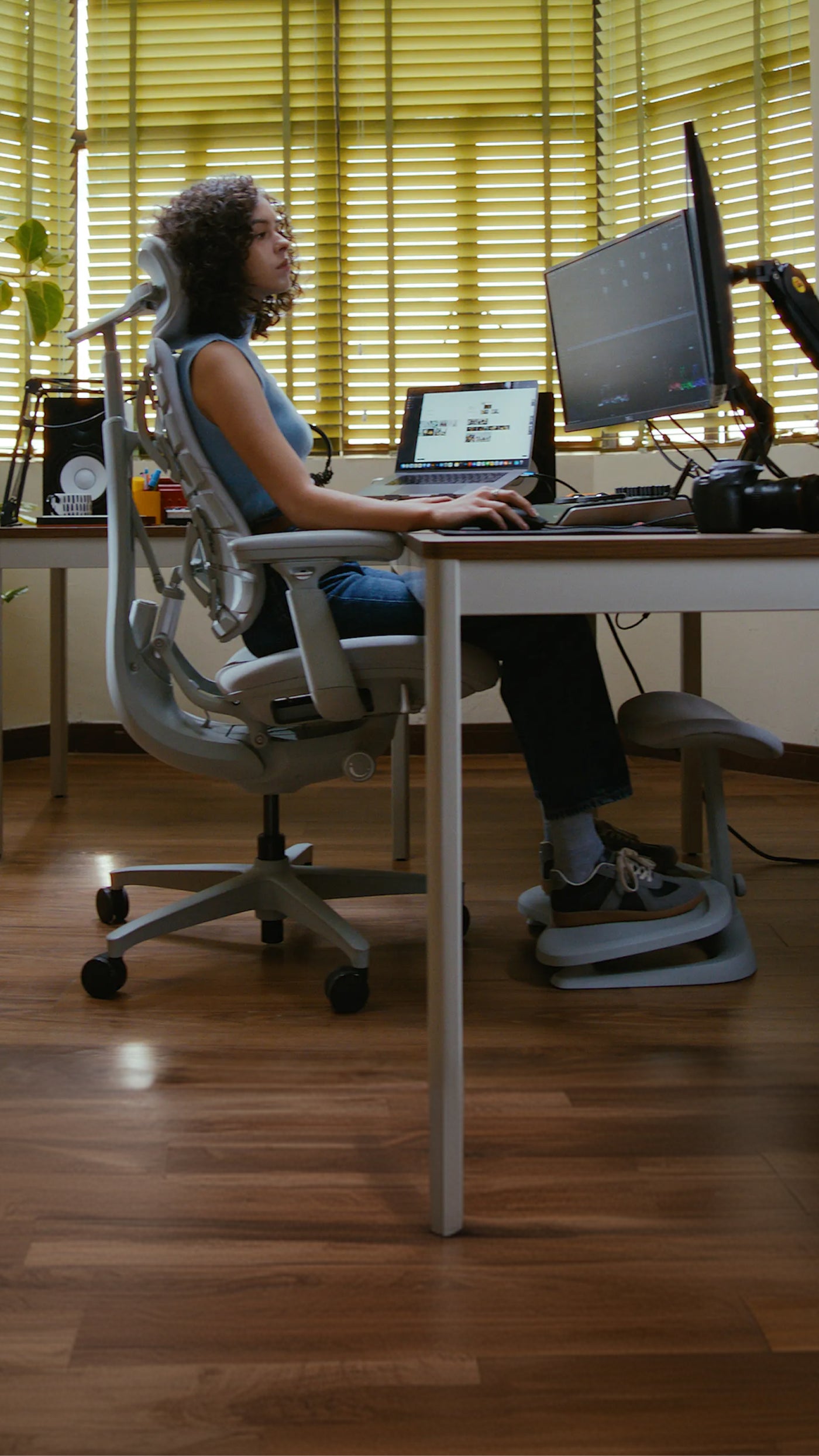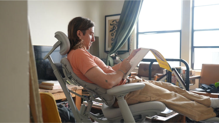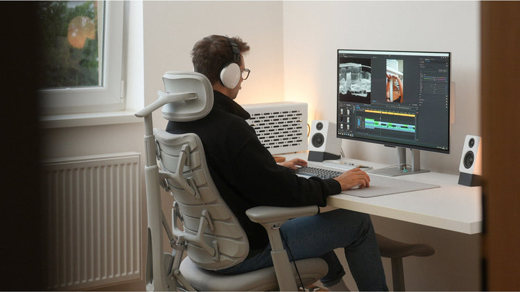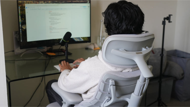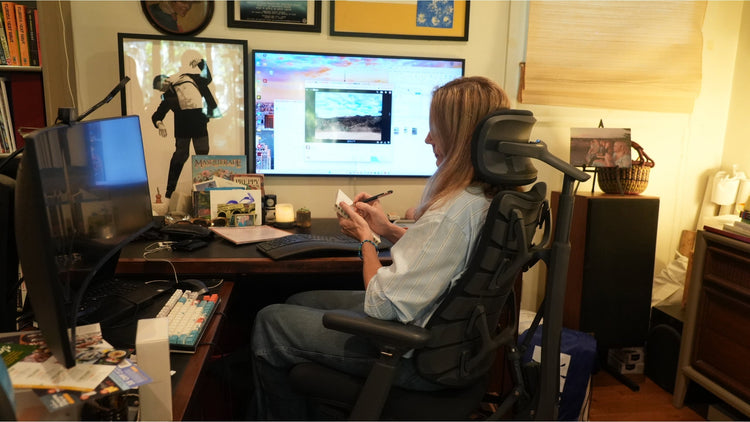Sunrian (Sunrain Wang), a lifelong filmmaker since high school, solo-produced a standout sci-fi short with improvised SFX while balancing intense editing and Zooms with health routines like Pilates—despite chair-bound challenges. Frustrated by a static pandemic chair causing constant pain and adjustments, she found relief in LiberNovo's soft, movement-following support. She loves its spine-stretching massage for tension release, using it 90% of her day as a "creative partner"; a coworker "couldn't get off it" and she recommends it for desk creators.
