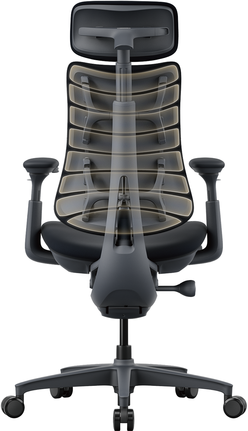 Dynamic Support. Adjusts instantly as you move, from headrest to armrests, for effortless comfort.
