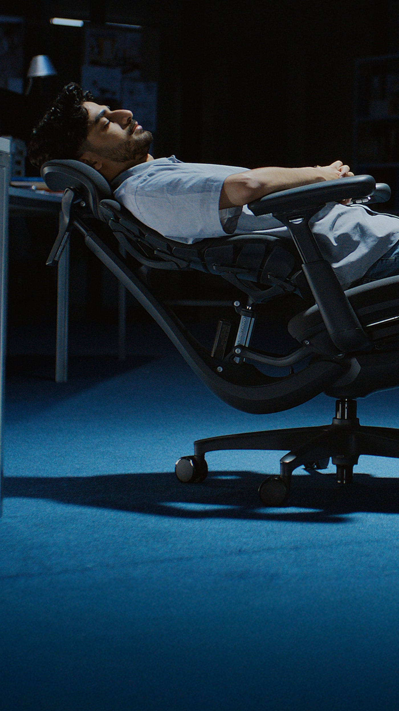 The ErgoPulse Motor System powers the backrest, sculpting an S-curve that supports up to 300 lbs and keeps your spine aligned with every move.
